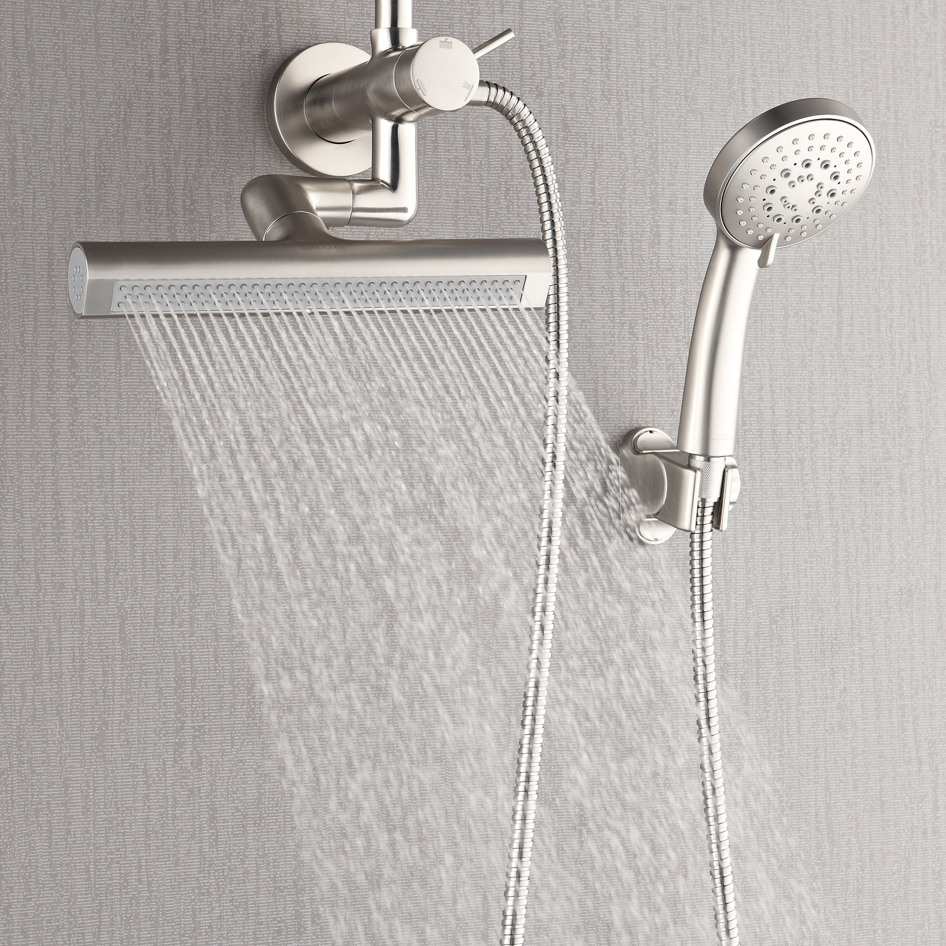 Upgrade even the smallest bathroom into a personal spa with the FORNO ACQUA Mini AcquaSPA Shower System. Ideal for apartments, guest suites, or compact layouts, this sleek 3-in-1 design features an oversized 9" rain shower head for generous full-body coverage, a 5 function ergonomic handheld, and a revolutionary 10-1/2 in. AcquaFALL Waterfall Jet for wide or focused relief. The adjustable body jet adapts to users of all heights for a truly customized experience. With a water-saving 1.8 GPM flow rate, it maintains satisfying pressure while conserving water. Quick DIY wall-mounted installation works with standard plumbing. Finished in brushed nickel, it delivers lasting style, comfort, and performance, without taking up space.