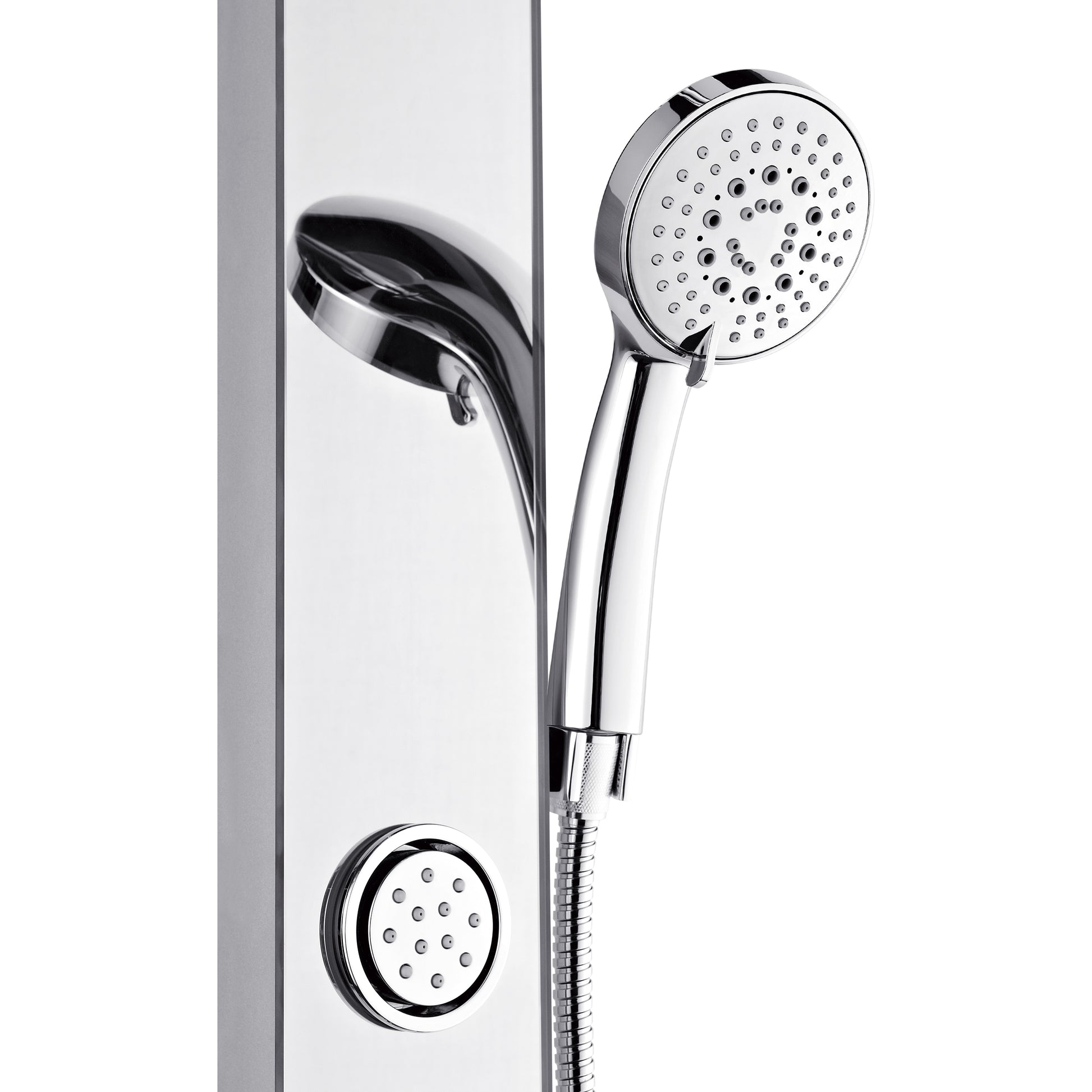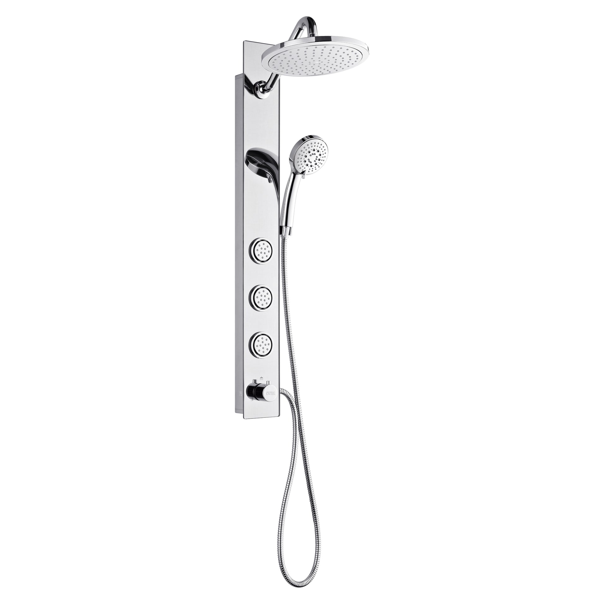 Forno Acqua AcquaSPA Shower Panel with SensoTEMP, Mirrored Stainless Steel Finish, Overhead Rainfall Shower, Handheld Shower Head, Body Jets, 2.5 GPM Flow Rate